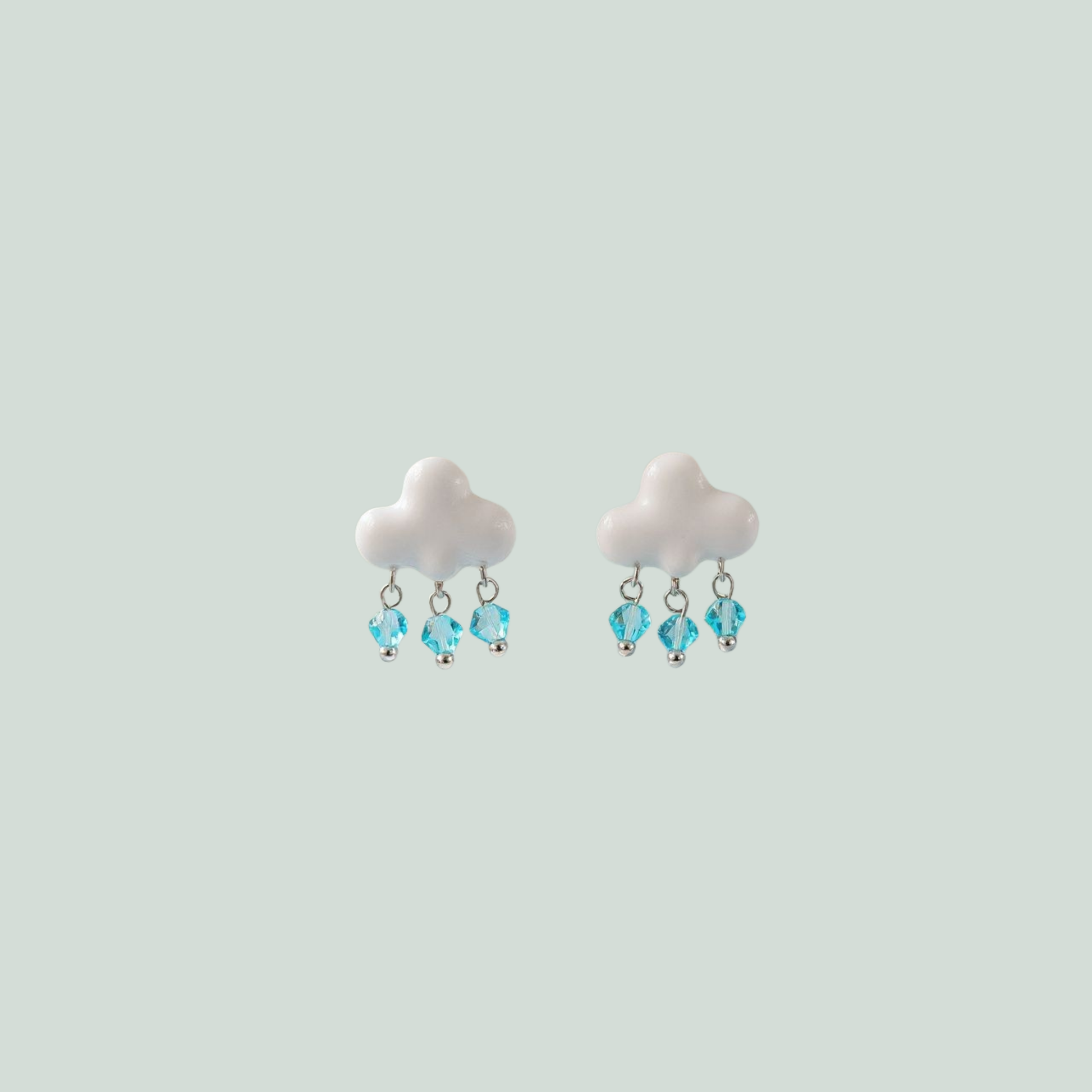 Handmade clay rain cloud earrings with sparkling raindrop accents and sterling silver posts. Playful, whimsical, and lightweight – the perfect statement accessory for dreamers and nature lovers.