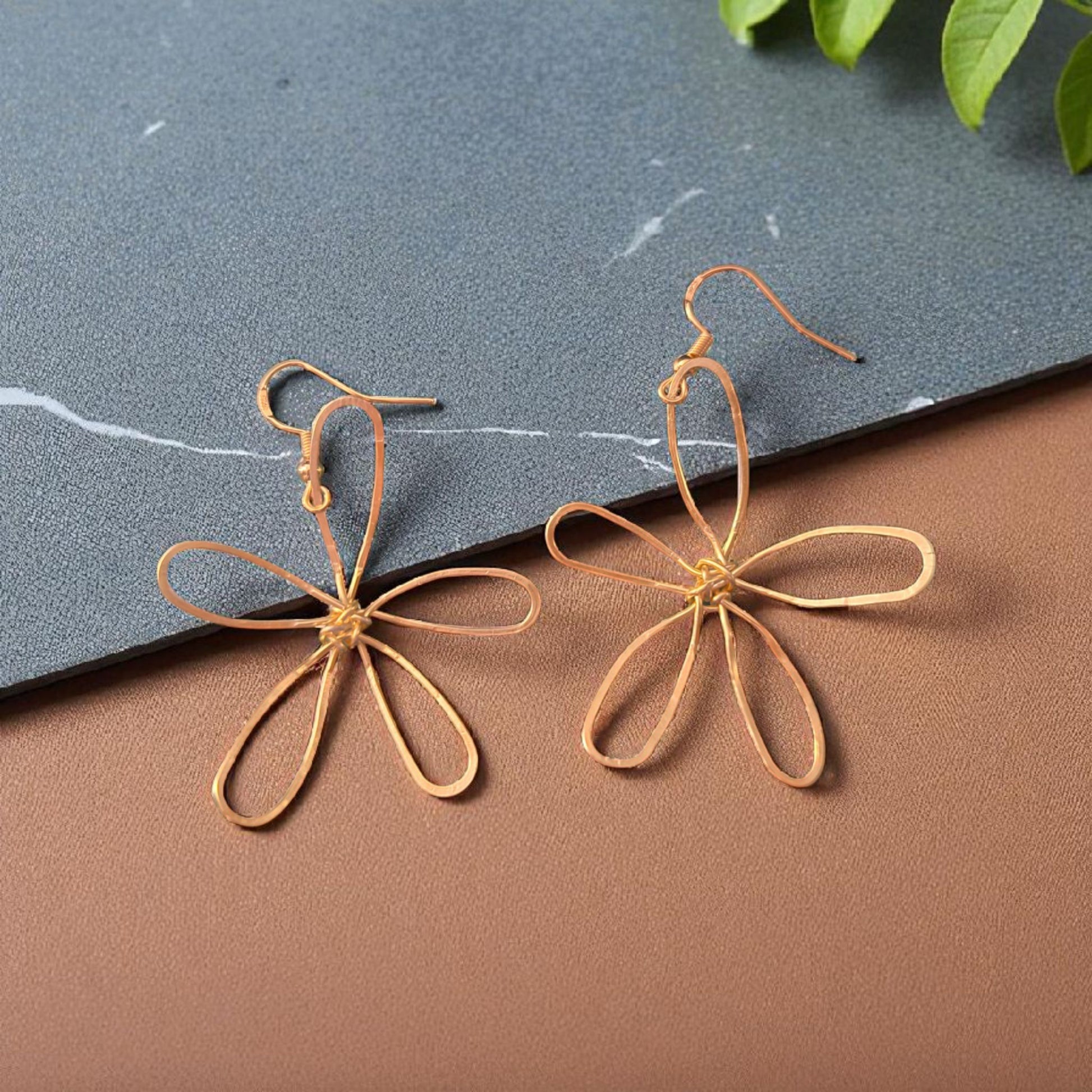 Hammered gold coloured stainless steel wire flowers with a bold, sculptural design. Each petal is carefully wrapped around the centre to create a striking, elegant bloom. Lightweight and versatile, perfect as a standout piece for any outfit.